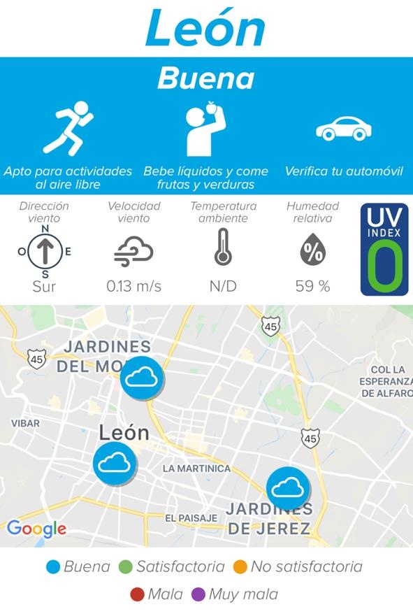 El municipio de León presenta una mejora del 37.5% en temas de calidad del aire, luego de registrar 10 días menos con condiciones no satisfactorias para llevar a cabo actividades al aire libre, además de que en este primer mes los niveles de partículas dañinas al organismo no llegaron a indicar números rojos.