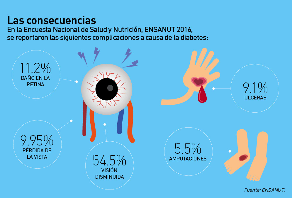 Aunque mucho se ha dicho sobre la diabetes, es necesario precisar que es una enfermedad crónica que se caracteriza por la elevación de los niveles de glucosa, lo cual puede ser ocasionado por falta de insulina o por una deficiencia o incapacidad del organismo al utilizarla. La Federación Mexicana de Diabetes explica que cuando no se tiene suficiente insulina o no funciona adecuadamente, la glucosa permanece en la sangre y “con el tiempo, se acumula en tus vasos sanguíneos y sale por la orina. Esto puede dañar ojos, riñones, nervios, corazón y vasos sanguíneos”.