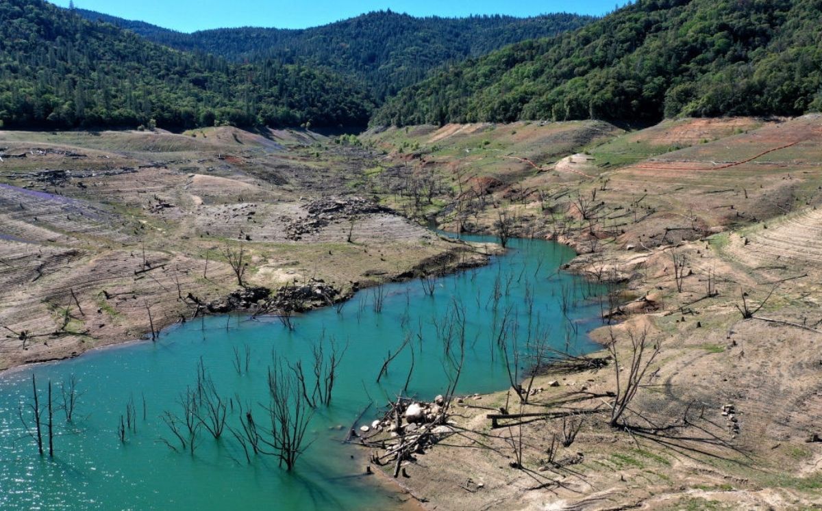 Las imágenes, capturadas con un dron, muestran la masiva presa ubicada del condado de Butte llena solo al 42 por ciento, por debajo de la mitad de su promedio histórico para estas fechas. La situación es casi tan mala a la vista durante la sequía de los años 2012 a 2016.
