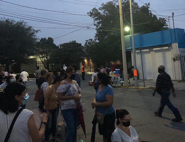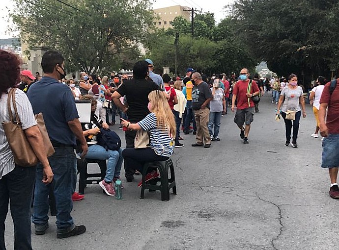 Apenas son las 6:33 horas y ya hay una fila desde la calle Eduardo Pequeño que le da toda la vuelta a la Facultad de Medicina, a unos 500 metros de la avenida Gonzalitos; son cerca de 6 kilómetros los que rodean el módulo.