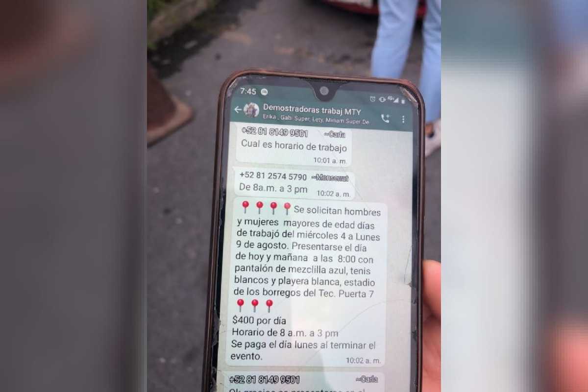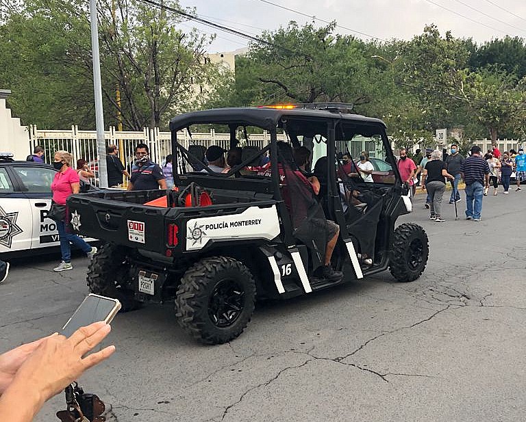 El municipio de Monterrey está ofreciendo este servicio a los que van llegando en la esquina de Calzada Madero y Eduardo Pequeño porque la fila empieza en el cruce de Dr. Carlos Canseco y la avenida Gonzalitos.