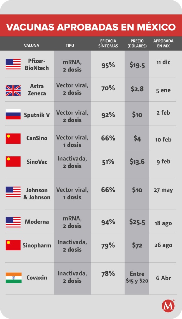 En México ya suman ocho las vacunas contra el covid-19 autorizadas para uso de emergencia, la cuales fueron aprobadas por la Comisión Federal para la Protección contra Riesgos Sanitarios (Cofepris).