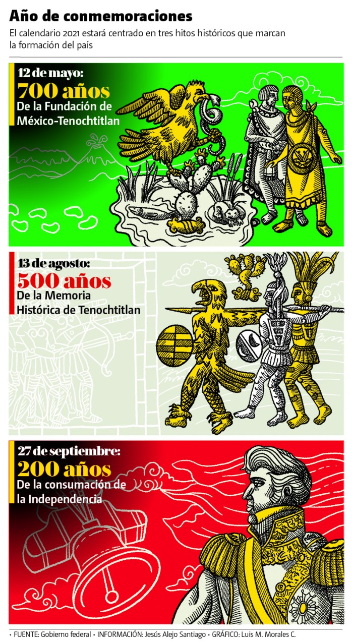 En 2021 se conmemoran 700 años de la fundación de México-Tenochtitlan, 500 de su caída y el bicentenario de la consumación de la Independencia. El historiador Alfredo Ávila, investigador del Instituto de Investigaciones Históricas de la UNAM, dice que “dentro del uso político del pasado es muy importante el tema de las efemérides”, algo que a los historiadores profesionales les parece un poco ridículo.