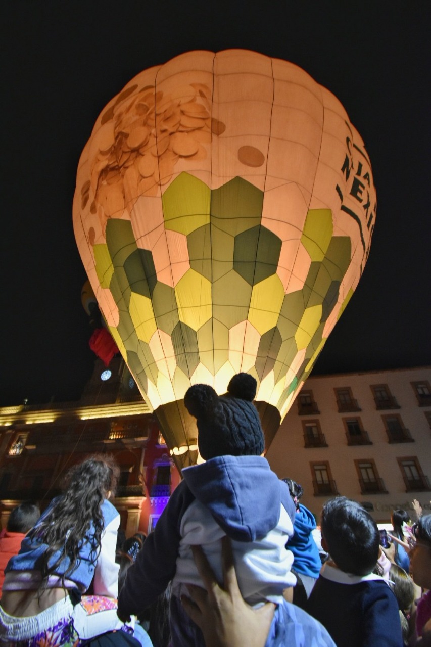 Fue frente a Presidencia Municipal donde los equipos de tres globos aerostáticos se instalaron para en cuestión de minutos llenarlos de aire caliente y robar las miradas de los presentes.