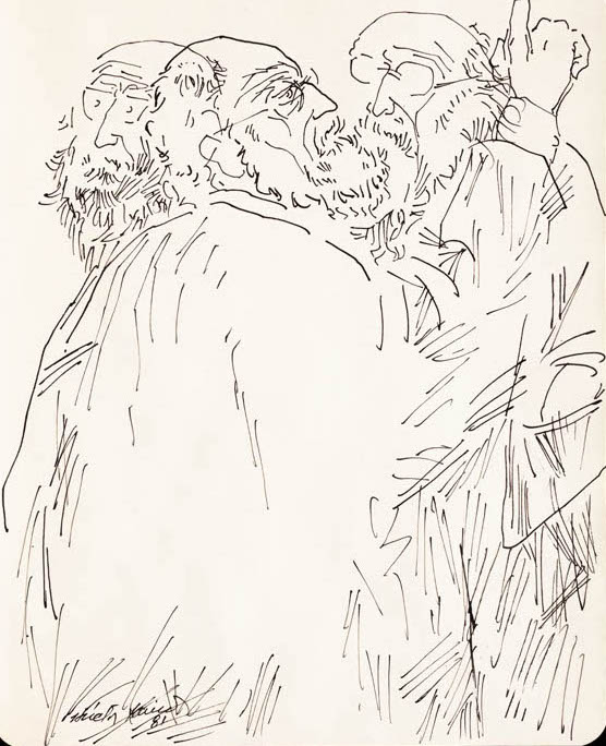 Visitar Héctor Xavier, señales de vida, que abrió al público este 7 de diciembre, es deambular por un microrrelato de la modernidad mexicana que nos ayuda a entender el presente. Es descubrir una ruta alterna, perderse en la intimidad del artista para ver el ejercicio cotidiano del dibujo. El espectador se enfrentará al ejercicio diario de la mano, al espontáneo que queda trazado en una servilleta o en un programa de mano o en un mantelito de papel, así no solo caminará por el pensamiento de Héctor Xavier, sino por la ciudad que caminó (ahí está el restaurante Kineret y La Flor de Lis, entre otros sitios ya inexistentes), por el paisaje que absorbió, mostrando esa capacidad de observación que ya había sorprendido en su tiempo a sus coetáneos en el libro-bestiario, Punta de plata, que hizo con Juan José Arreola, después de compartir ocho meses de visitas al zoológico de Chapultepec para contemplar a los animales, en un ejercicio que se adelantó al conmovedor texto de John Berger “¿Por qué mirar a los animales?”… ¿Por qué mirar?, la obra de Xavier no propone una respuesta, simplemente nos cuestiona y nos reitera la necesidad de observar, de observarnos. De detenernos a mirar el tiempo sin tiempo en cuerpos humanos y animales, en movimientos al aire que evocan la vida, en gestos que emergen del espíritu para marcar los rostros y también intuir el futuro en esos retratos, como se observa en retratos de su hija Tamari y de José Emilio Pacheco, o la simultaneidad en los de Jaime Labastida y Juan José Gurrola. Contemplar el trabajo de Héctor Xavier exige calma, hacer una pausa para imaginar cómo un artista puede convertir la técnica en investigación y cómo el hacer, esa práctica diaria que no cansa, sino que enaltece, se transforma en un método de conocimiento.