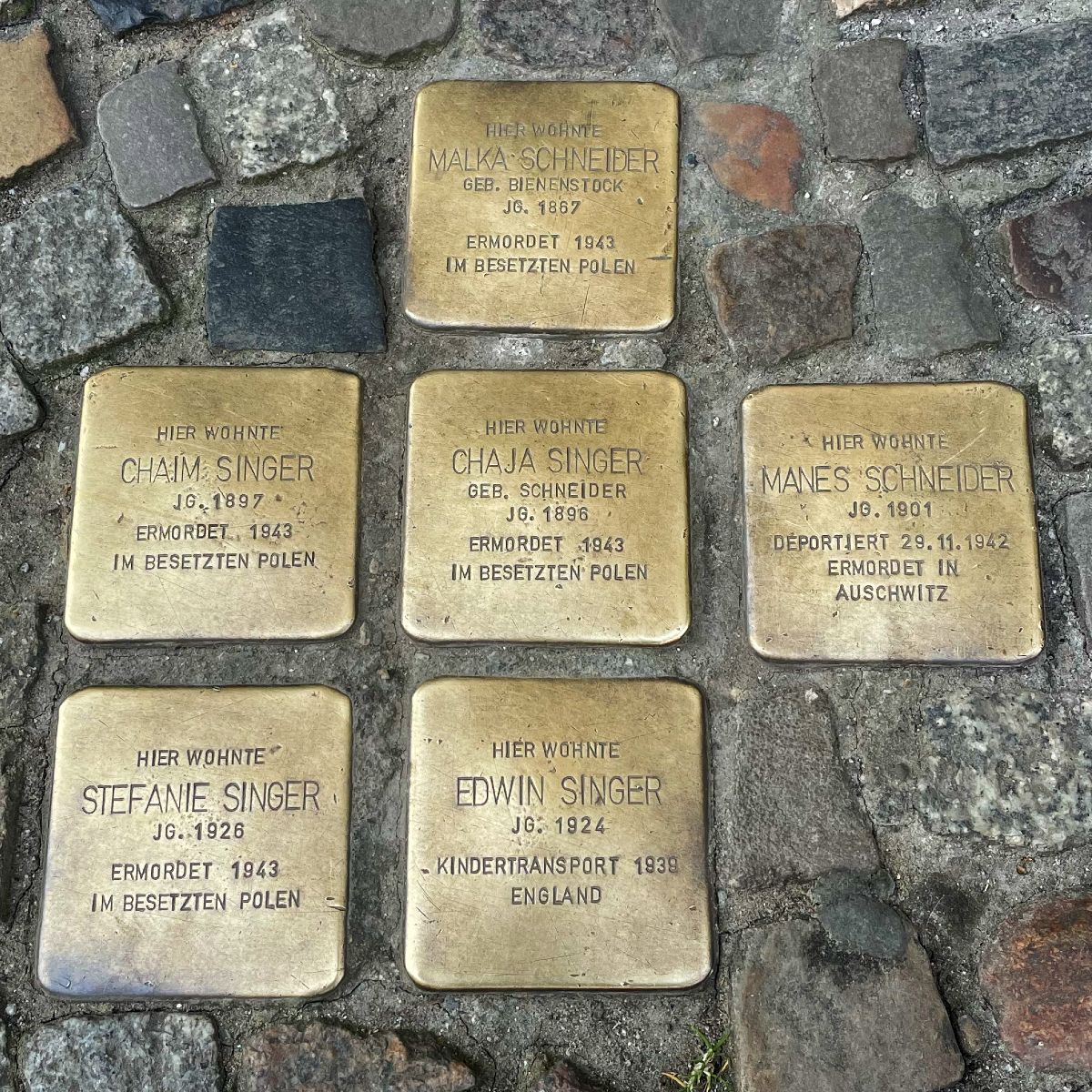 En Mitte pareciera que el tiempo no ha pasado: las calles no pierden su nombre y trazo original ni los edificios sus fachadas anteriores a La Guerra (o han sido cuidadosamente restauradas para que así lo parezca). Sin embargo, esas placas incrustadas en las piedras de calles y banquetas, como tratando de imitar las viejas baldosas de la zona, permanecen como signo imborrable de memoria y no pueden pasar desapercibidas pese a sus apenas 10 cm de ancho. Por algo Gunter Demnig, el artista que inició el proyecto en 1992, las bautizó como Stolpersteine, es decir, piedras con las que se tropieza. De tanto convivir con ellas, los habitantes multiculturales de Mitte hemos aprendido a tropezar con ellas sin caernos, recordando a esos vecinos del pasado que no encontraron refugio donde nosotros sí.