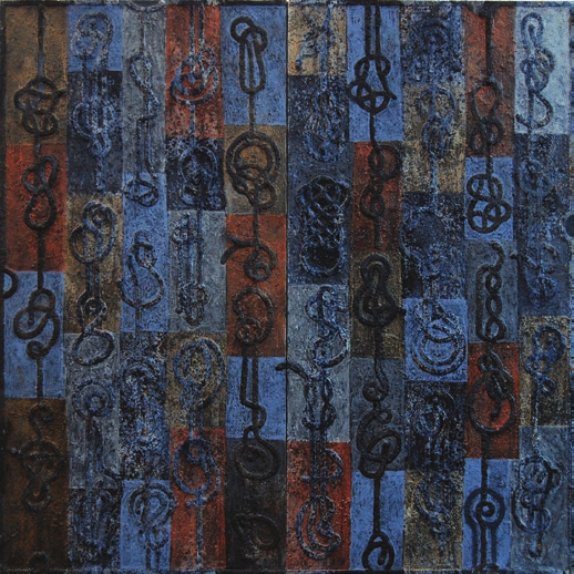 En su larga trayectoria que combinó los talentos de diseñador, editor y artista, sus pupilos, colaboradores y colegas se convirtieron en amigos y testigos de sus brillantes aportaciones a cada uno de esos campos de la cultura. Por mi parte, tengo la impresión de que, en la plástica, Vicente Rojo se empezó a soltar a partir de los años 1990. El punto de inflexión lo marcó la serie Escenarios, que fue renunciando a los andamiajes sistemáticos y a los ritmos estrictamente paralelos de sus ciclos anteriores (Negaciones y México bajo la lluvia, por ejemplo), para abrir aquella “geometría sensible” a soluciones y paletas que aunaban la sensualidad a una energía brotada de la fantasía y la gracia infantil, de libres evocaciones ópticas, de juegos celebratorios. Surgieron laberintos erosionados vistos en picada, ciudadelas de tierra y sangre, códices con espejos enterrados, pirámides con discos solares de barro bruñido, cajas de herramientas para Méliès y Julio Verne, partituras donde se posan los signos como pájaros en los alambres… ¡Hasta un homenaje a la discoteca salpicado de lentejuelas vi en una exposición de la López Quiroga, hará 25 años!