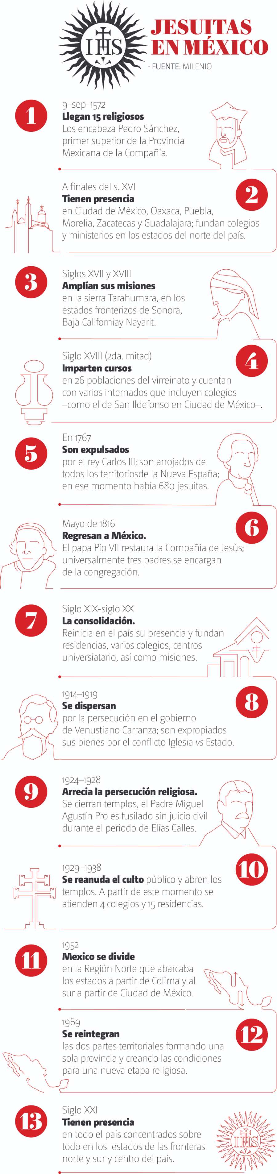 La compañía de Jesús llegó a México hace 448 años y durante cuatro siglos sus miembros han colaborado principalmente en el desarrollo de la educación, así como con misiones a lo largo y ancho del país, dando apoyo a comunidades indígenas, asesorías a obreros, defendiendo derechos humanos, a migrantes y dando voz a los sin voz.