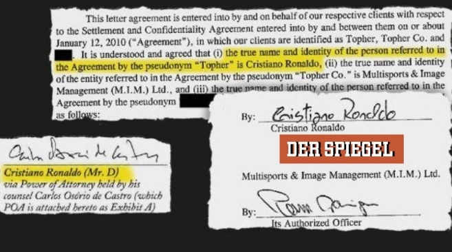 La supuesta violación de Cristiano Ronaldo a una ex modelo americana aún continúa dando de qué hablar, ya que la revista alemana Der Spiegel publicó un presunto contrato de confidencialidad, firmado por el astro portugués y Kathryn Mayorga, relacionado con dicha agresión sexual.