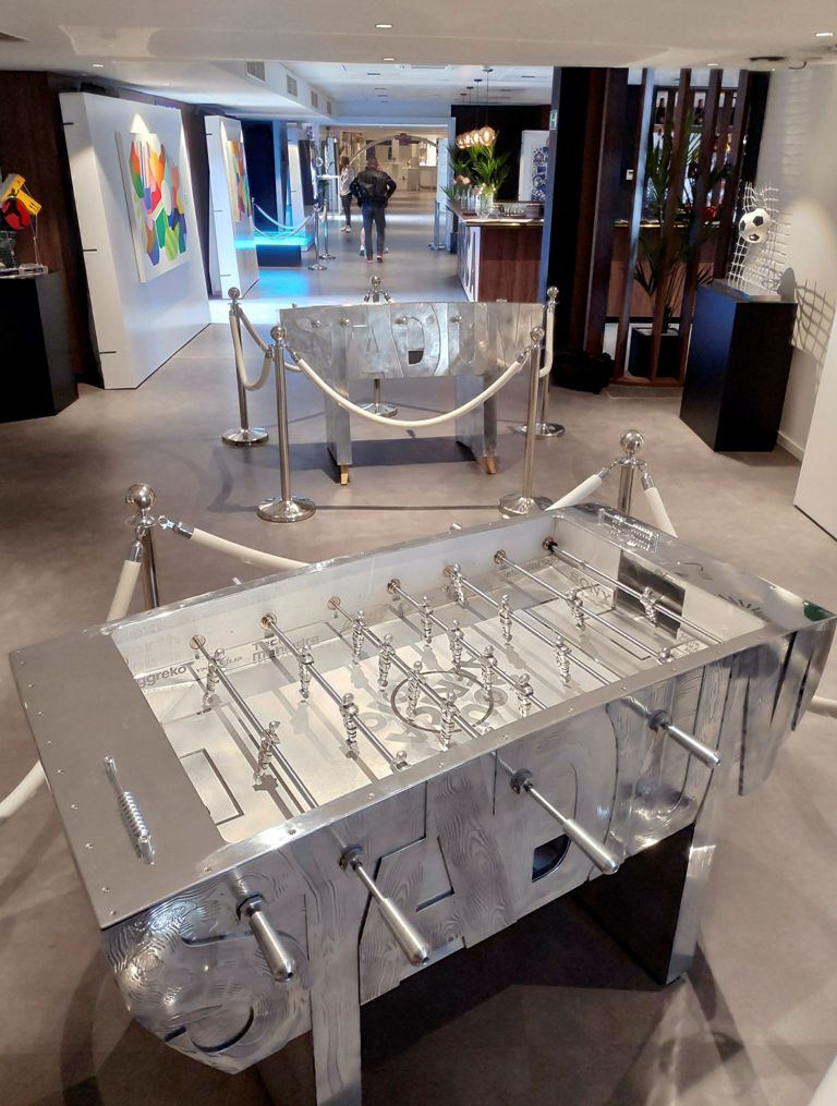 La empresa belga Play It Art, dedicada a fusionar futbol y creación, presentó este lunes su colección artística al completo, que incluye como joya de la corona y con un precio de 120 mil euros -aproximadamente 135 mil dólares- un futbolito de lujo inspirado en la Final del Mundial de Sudáfrica 2010 en la que España derrotó a Holanda.