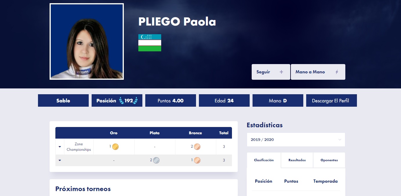 Paola Pliego, quien compite en la modalidad de sable, ya cuenta con ranking mundial, ocupa el sitio 192 con cuatro puntos. El próximo torneo de la sablista será la Universiada Mundial de Nápoles, a realizarse en este mes.