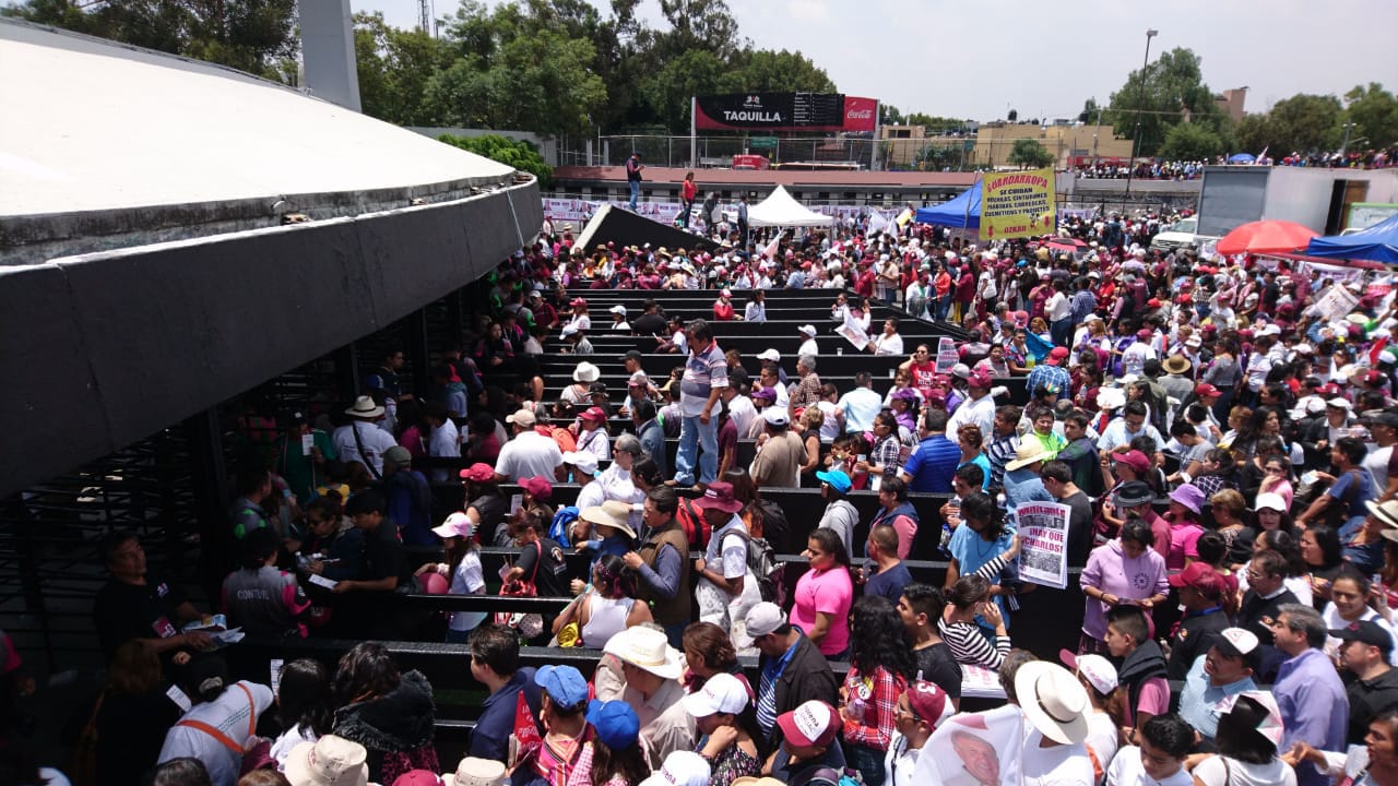 La gente formada para ingresar al Estadio Azteca para el #AMLOFEST