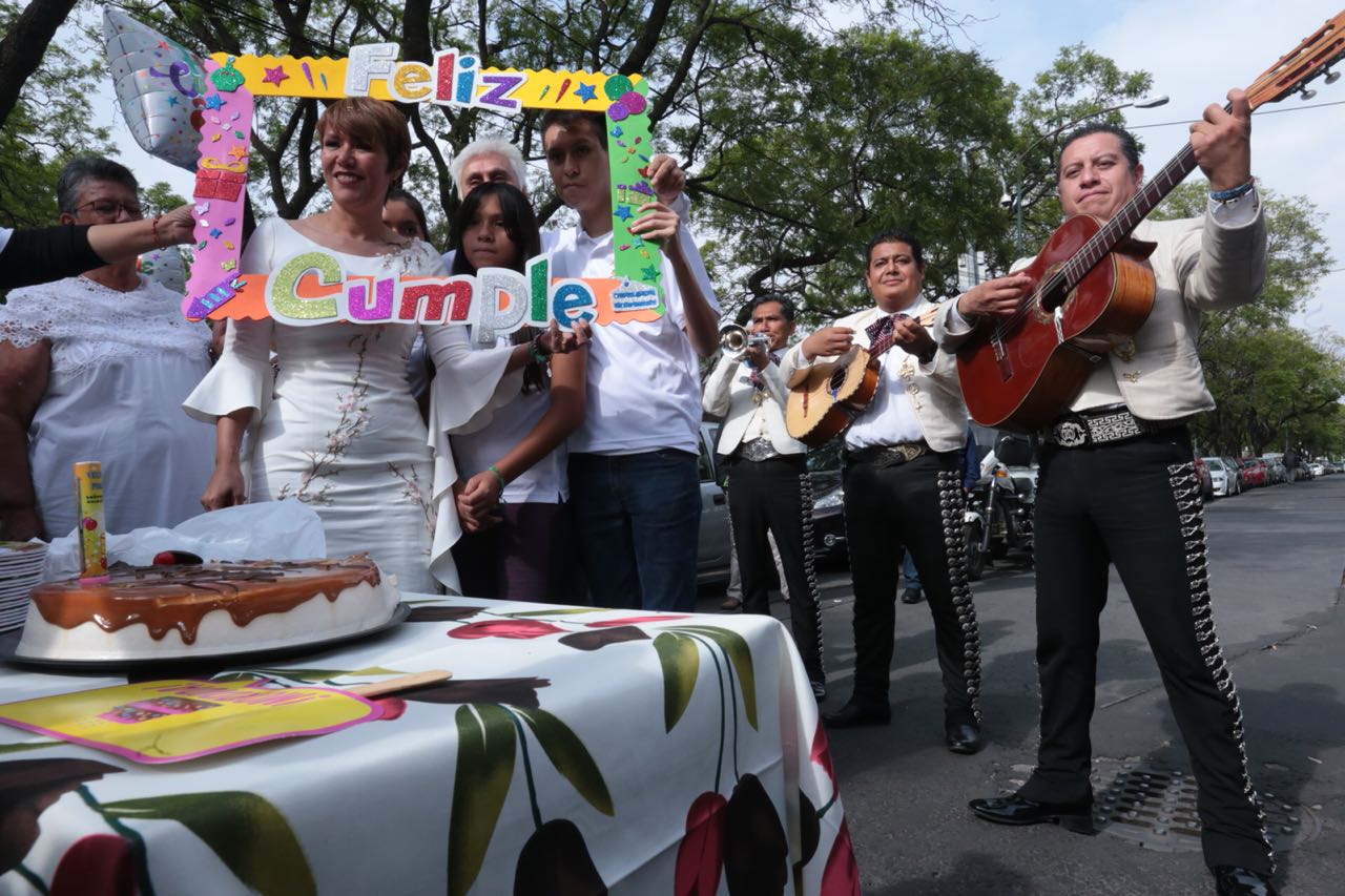 Reciben a la candidata independiente, Lorena Osornio, con mariachis y un pastel con motivo de su cumpleaños número 50.