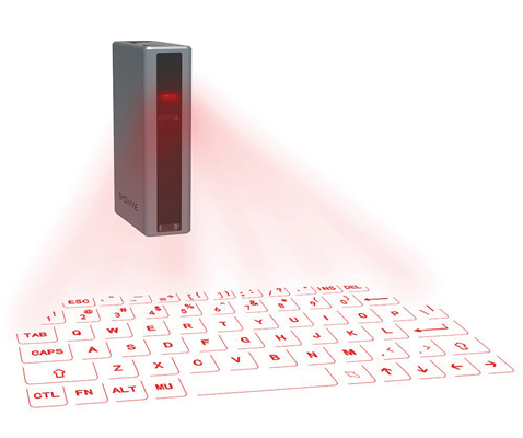 • El gadget despliega un teclado láser virtual sobre la superficie lisa más cercana, y al conectarlo a cualquier smartphone permite tomar notas fácilmente.