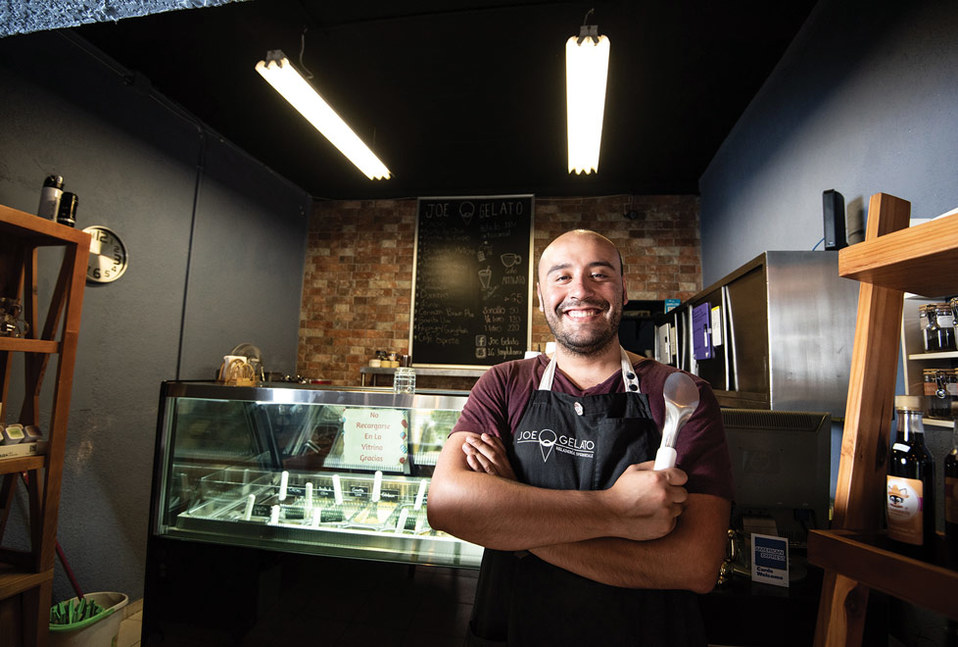 Este licenciado en Gastronomía y Artes Culinarias estudió en Carpigiani Gelato University Bologna, Italia, de donde salen los maestros especialistas en el arte de preparar gelatos y sorbetes. Forma parte de la Gelato Naturale Academy, en Grosseto, y ha trabajado en diferentes cocinas, siempre enfocado en fine dining, como Pujol, Quay, Narisawa & Le Calandre.