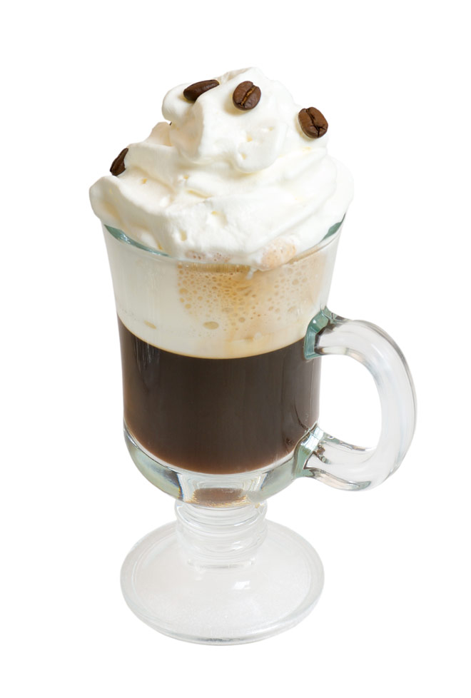 Preparación: Como en las otras variedades, la base es café espresso, que se combina con whisky irlandés, cubos de azúcar y crema o nata.