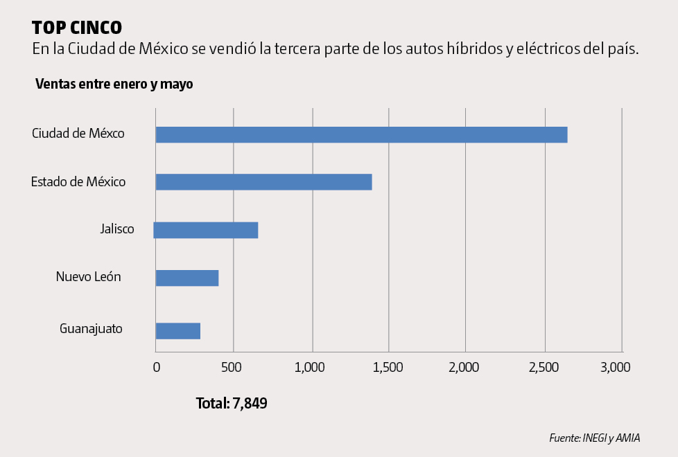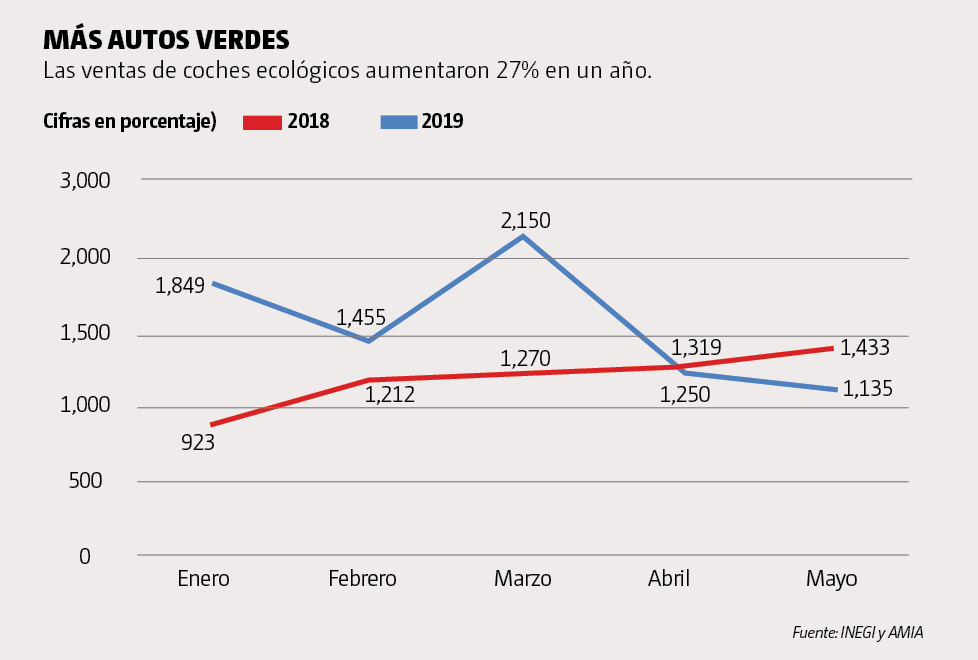 En México, en los primeros cinco meses del año se comercializaron 7,849 autos con esta tecnología, un incremento de 27% frente al mismo periodo de 2018, de acuerdo con datos del INEGI en su último Reporte de ventas de vehículos eléctricos e híbridos de agosto.