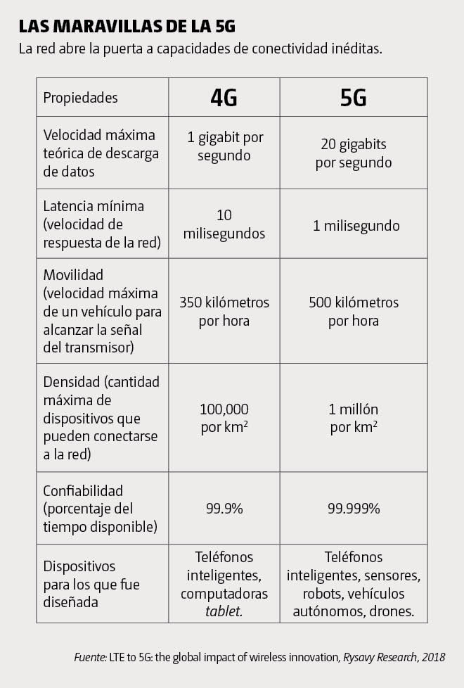 Las redes móviles de quinta generación, mejor conocidas como 5G, prometen enviar y recibir datos con una velocidad de descarga de hasta 20 gigabits por segundo. Estas redes serán capaces de comunicar no solo personas, sino sensores, máquinas, vehículos, robots y una multitud de dispositivos más.