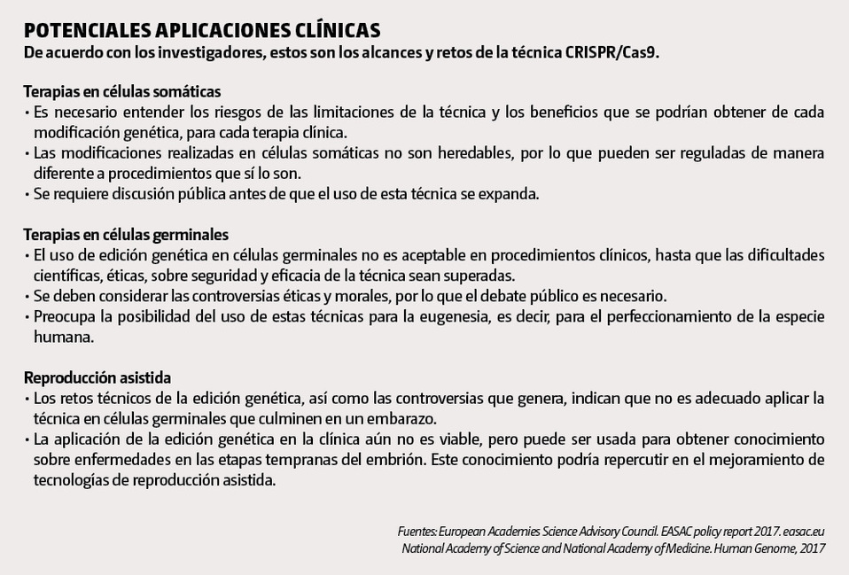 Son muchos los laboratorios en el mundo que actualmente trabajan en refinar el sistema, para que realmente sea infalible y entonces sí, tener una herramienta que incluso podría ser terapéutica, para corregir defectos a nivel genético.