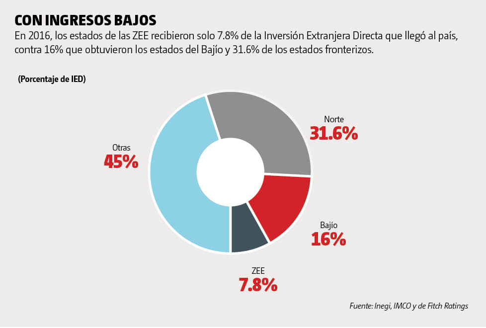Pero el enfoque actual de la administración de López Obrador está encaminado hacia el Sureste de México. En el PND no se mencionan las ZEE, pero sí un Programa para el Desarrollo del Istmo de Tehuantepec, que consiste en un plan regional con el objetivo de impulsar el crecimiento económico de esa región del país.