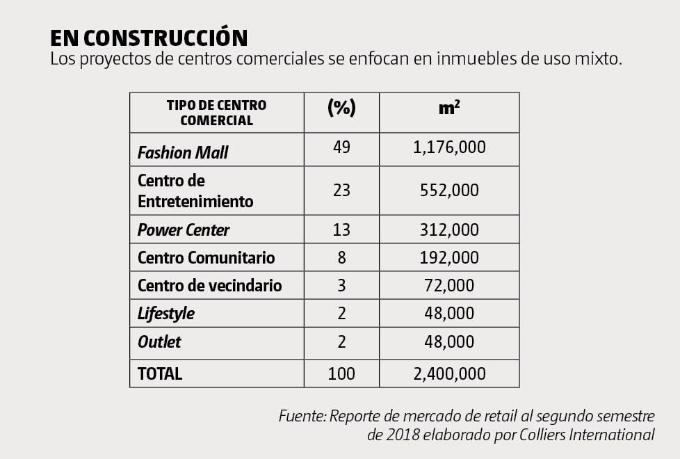 En promedio, durante los últimos cinco años, el inventario creció en más de 800,000 m2 anuales. Para 2019, se esperaba la apertura de 38 centros comerciales nuevos, mayores a 10,000 m2, y nueve expansiones. La suma habría anexado al inventario más de 1.4 millones de m2. Estas cifras están ahora en revisión y las obras en espera de señales más claras del desempeño económico del país.