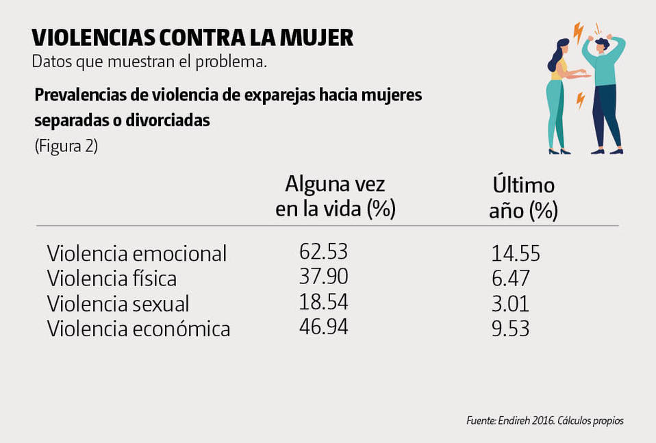 Si bien la Endireh 2016 (Encuesta Nacional sobre la Dinámica de las Relaciones en los Hogares) solo da cuenta de aquella que tiene lugar en el marco de relaciones heterosexuales, es importante reconocer tres grandes grupos de mujeres: mujeres en unión (casadas o unidas), mujeres previamente unidas (separadas y divorciadas) y mujeres solteras y, por ende, tres tipos de violencia de pareja: violencia conyugal, violencia de exparejas y violencia en el noviazgo.