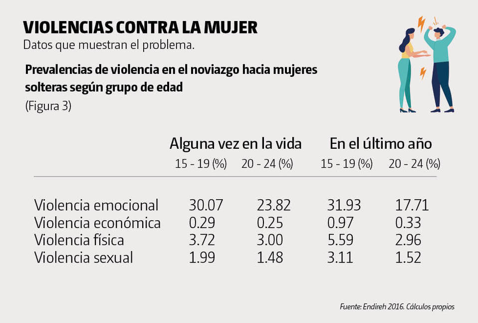 Cuando nos referimos a la violencia en el noviazgo (hacia mujeres solteras) es relevante diferenciar a mujeres adolescentes (entre los 15 y 19 años) de las mujeres adultas, de 20 años y más, ya que convencionalmente se acepta que la adolescencia es una etapa de desarrollo previa a la vida adulta, y que existen importantes diferencias entre ambos grupos en términos de desarrollo emocional y psicológico.