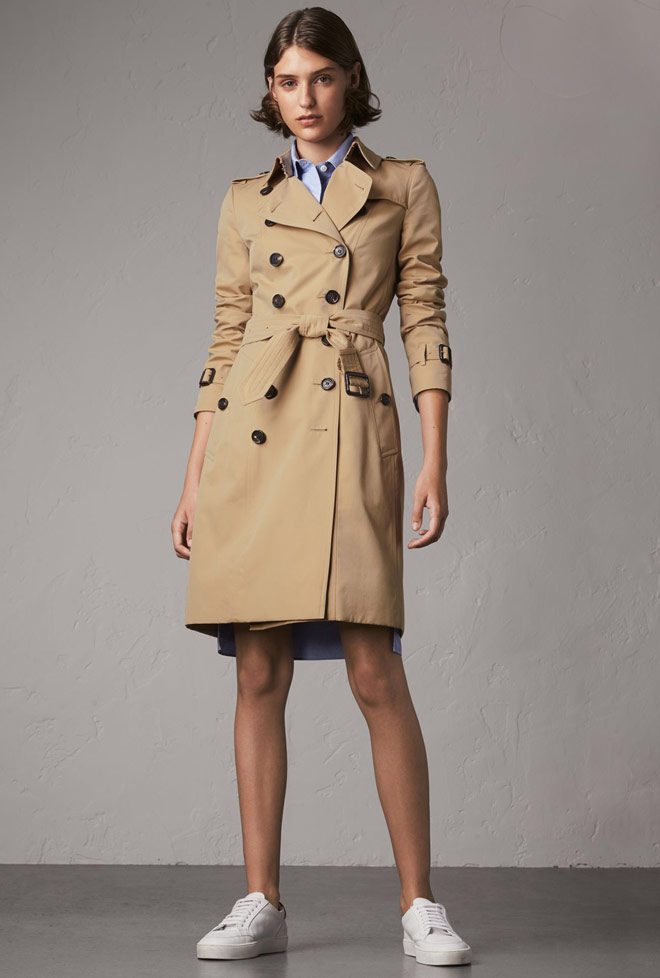 Durante más de 100 años, la clásica gabardina con forro a cuadros sólo estuvo disponible en caqui y negro. A partir de 2001 comenzó a reinventarse bajo la dirección de Christopher Bailey, quien añadió texturas y variaciones al corte. Ahora, con Ricardo Tisci al mando, la marca va un paso más lejos al darle un toque más urbano.