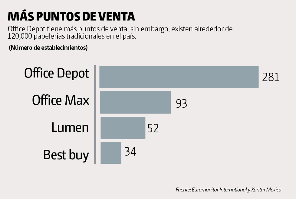 Office Depot lidera el mercado de las papelerías especializada con 36% de participación en el valor de las ventas en México, según la consultora Euromonitor International. “Esperamos buenos números en la temporada de regresos a clases y un crecimiento en las ventas”, menciona la compañía en un comunicado
