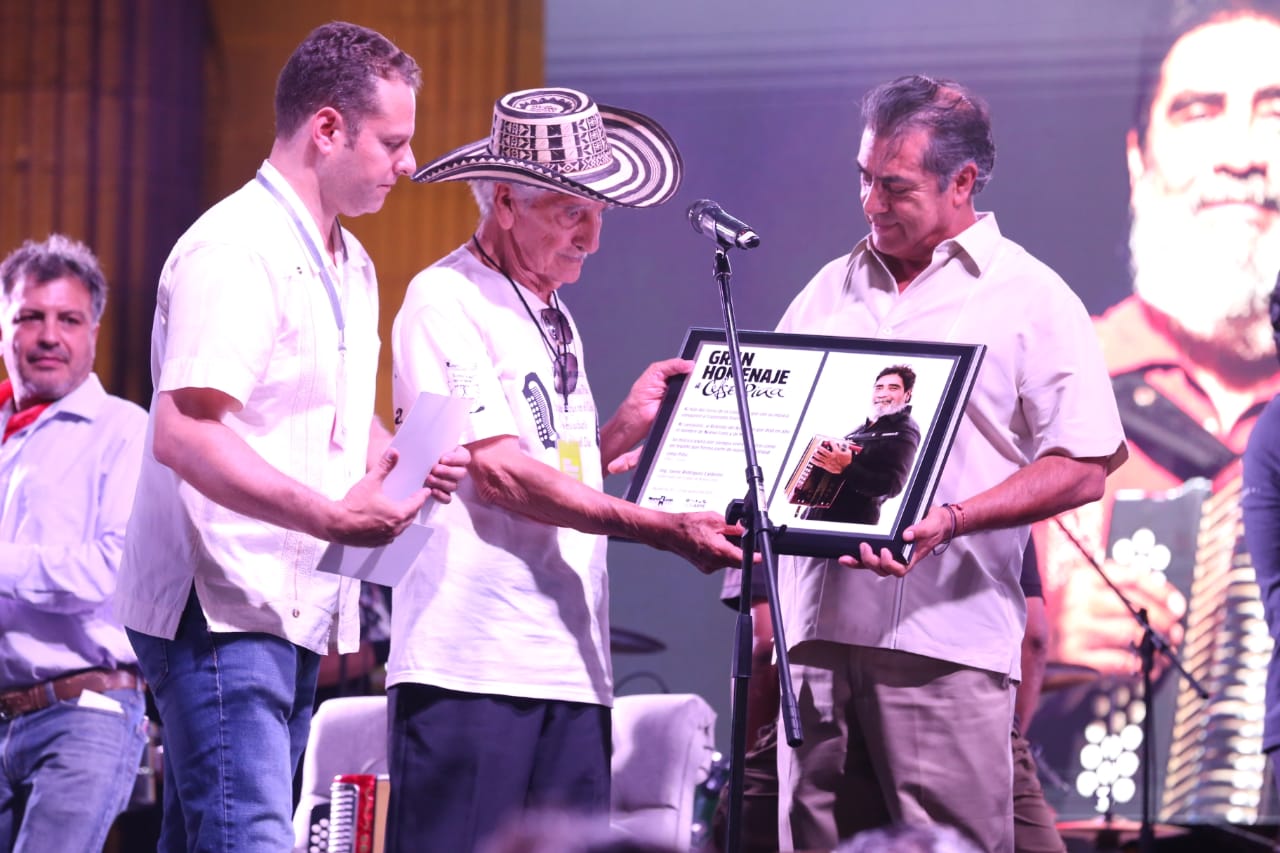 Javier López subió al escenario y pidió un minuto de aplausos para el homenajeado, de quien, recalcó, les enseñó a todos la humildad. Luego dedicó al Cacique de la Campana el tema “Rosita”, mientras que “Oye mi cumbia” LAS CLAVES fue interpretada por Érick Joao. Después, en medio de aplausos y porras, el padre de Celso Piña subió al escenario en punto de las 20:15.