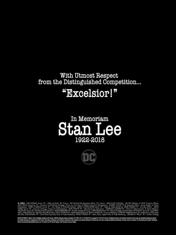 “Con el mayor respeto de nuestra distinguida competencia… ¡Excelsior! En memoria a Stan Lee 1922-2018”, dice el texto en una página negra como señal de luto.