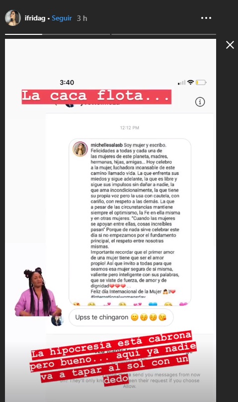 Tras haber hecho la publicación, Frida no se contuvo en responder “La caca flota” con una captura de pantalla del mensaje de Michelle.