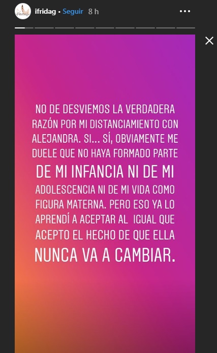 La intérprete de “Ándale” nuevamente recurrió a las historias de Instagram para revelar el verdadero motivo por el cual se alejó de hablarle a Alejandra Guzmán.