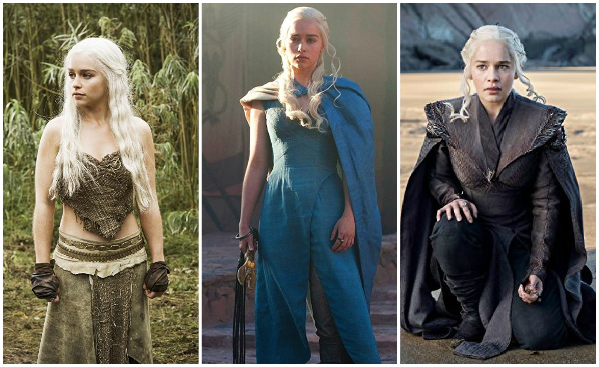 Daenerys Targaryen en las primeras temporadas lucía inocente y sólo tomaba las prendas que le otorgaba Khal Drogo, sin embargo, con forme avanzaba la temporalidad en la serie, su vestimenta le dio mayor empoderamiento hasta convertirse en una de los personajes principales de Game of Thrones.