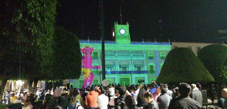 Ante la mirada de cientos de personas de León y de turistas se presentó con éxito el espectáculo León Light Fest, el cual tuvo como primer escenario la Presidencia Municipal.