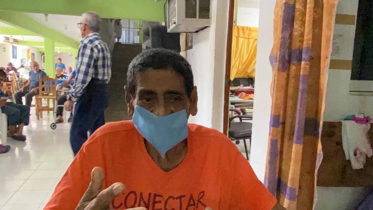 Rodolfo Carmona, de 65 años, trabajó por muchos años en los muelles del Puerto de Veracruz, pero está enfermo de las piernas y tuvo que dejarlo; él es otro de los inquilinos del asilo Congra, donde no tiene familia que lo visite.