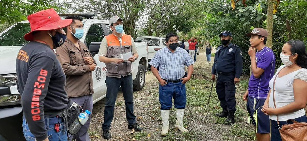 El geólogo Pasquinel de la Fraga Chávez y el biólogo Heriberto Olivas del Moral de la Secretaría de Protección Civil recorrieron con el alcalde interino de Moloacán, Apolinar Lara, más de un kilómetro de terreno en la localidad de Acapala II.
