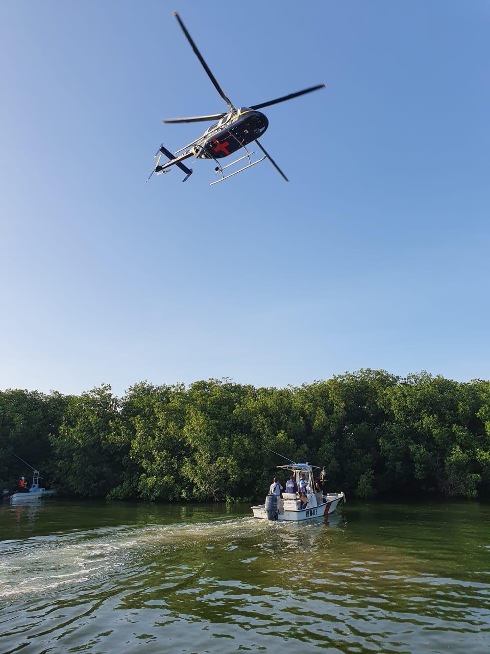 Por segundo día consecutivo, socorristas y brigadistas continúa con la búsqueda de un capitán que se extravió en un manglar de la laguna Nichupté en Cancún.