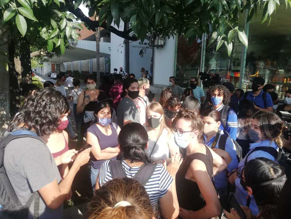Los manifestantes aseguran que por las avenidas aledañas a la dependencia se les está deteniendo a algunos se les amenazó con armas, una de ellas aseguró que hasta el intentaron quitar el celular porque grabó el momento en el que detuvieron a una persona de manera violenta