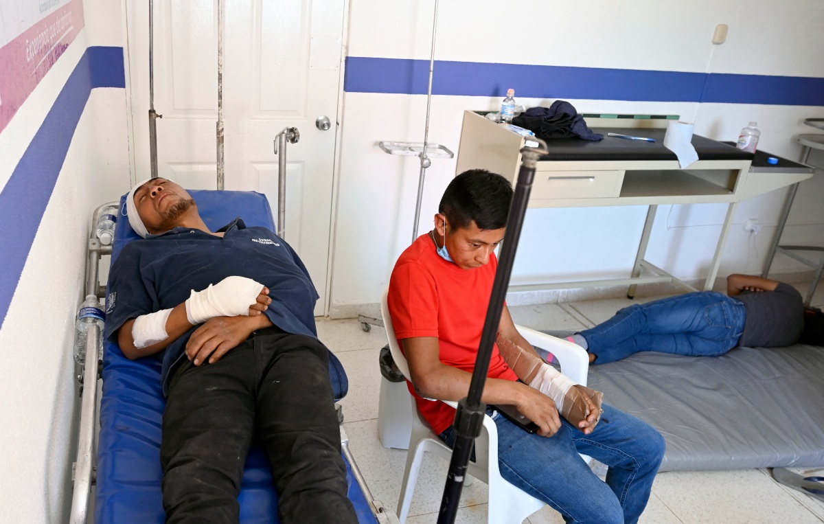 Selvín permanece con una hoja pegada al pecho que contiene sus datos personales. A su alrededor, en el pequeño puesto de salud, una decena de enfermeras se mueven de un lugar a otro para proporcionar calmantes a unos 33 heridos, en su mayoría jóvenes como Aura Meletz, de 21 años, también guatemalteca.