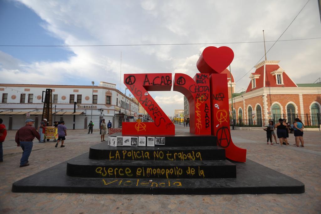 Un grupo de manifestantes prendieron fuego y vandalizaron el monumento del centro de Ciudad Juárez, Chihuahua, como protesta por el abuso policial y la violencia que se ha vivido en los últimos días.