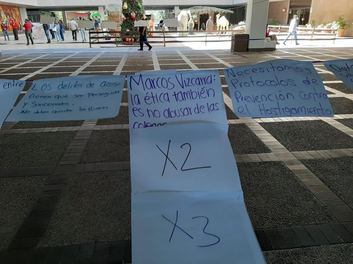 Mujeres periodistas y comunicadoras de Culiacán realizaron una manifestación contra el acoso que sufren al interior del gremio, que muchas veces se calla, por lo que colocaron un tendedero en palacio de gobierno donde se exhiben estas prácticas.