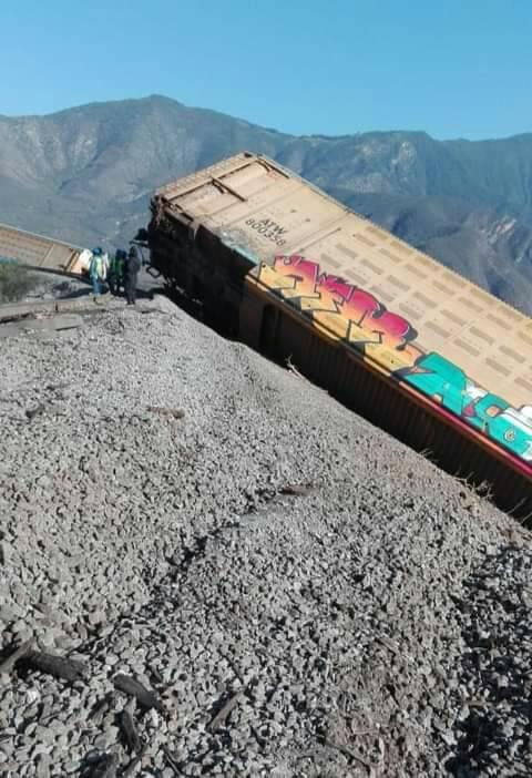 El accidente que dejó grandes pérdidas económicas, ya que cada vagón transporta al menos 15 vehículos, ocurrió a la altura de La Pera en la localidad de El Mezquite.
