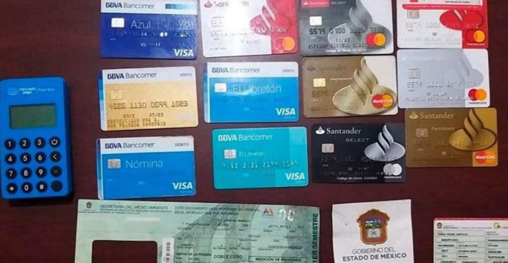 Los policías solicitaron una revisión de la unidad que estaba reportada y encontraron las tarjetas y un aparato para clonar tarjetas de crédito.
