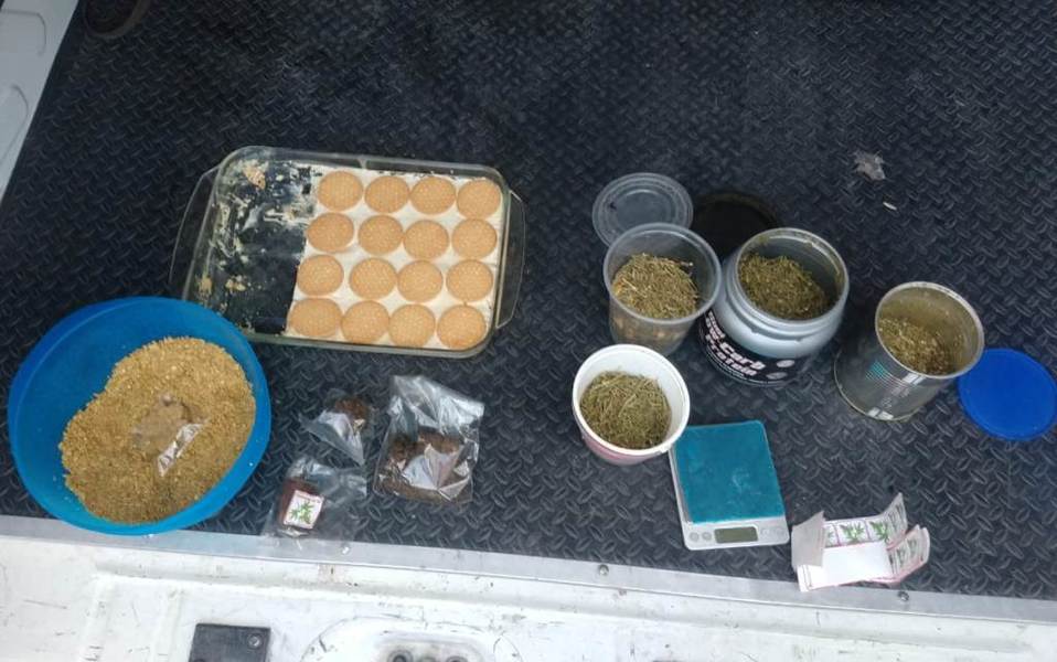 Los policías informaron que al revisar la unidad en la que viajaban y con apoyo de elementos caninos se localizaron cuatro recipientes con 710 gramos de marihuana así como comida y dulces elaborados con cannabis.