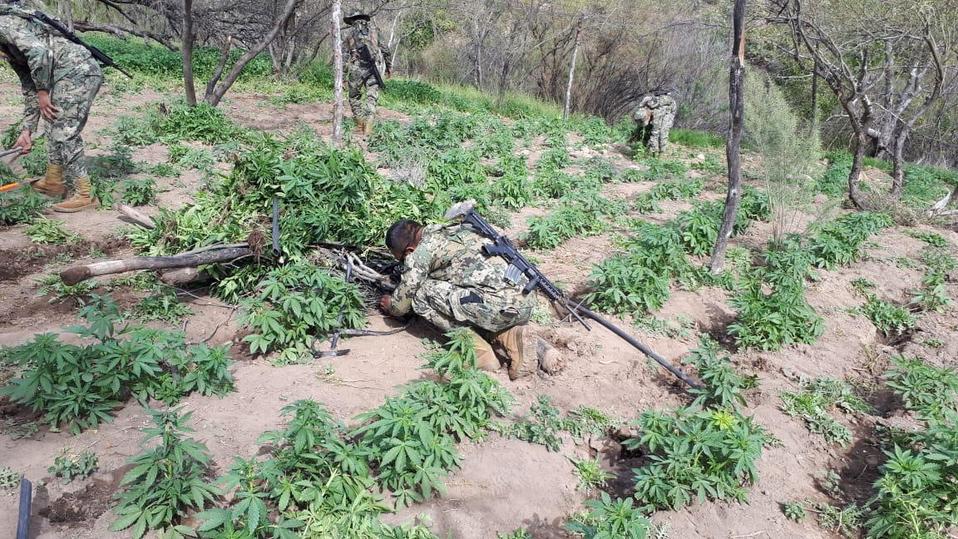 Elementos de la Secretaría de Marina (Semar) localizaron y destruyeron seis sembradíos de mariguana en el poblado de Valle de las Palmas en Tecate, Baja California.