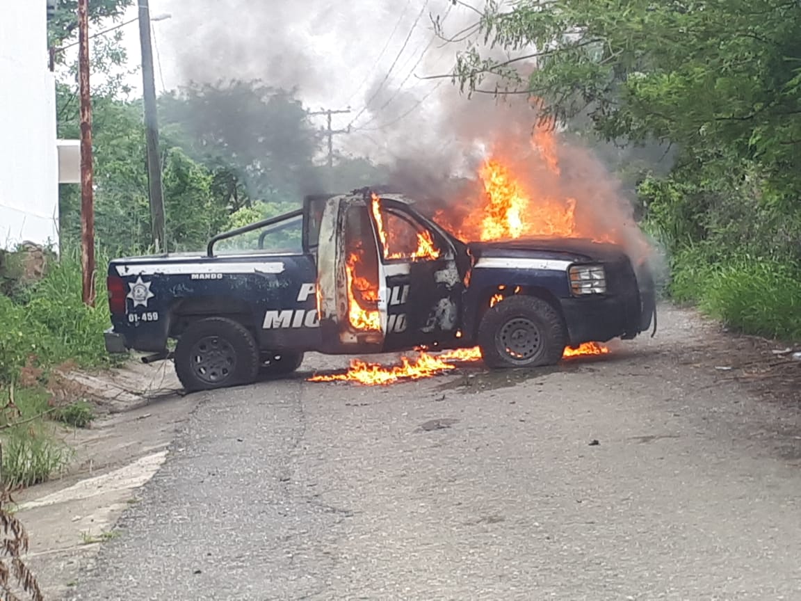 Un grupo de 200 aspirantes a normalistas quemó una patrulla y una camioneta repartidora de frituras, en el municipio de Arteaga, Michoacán.