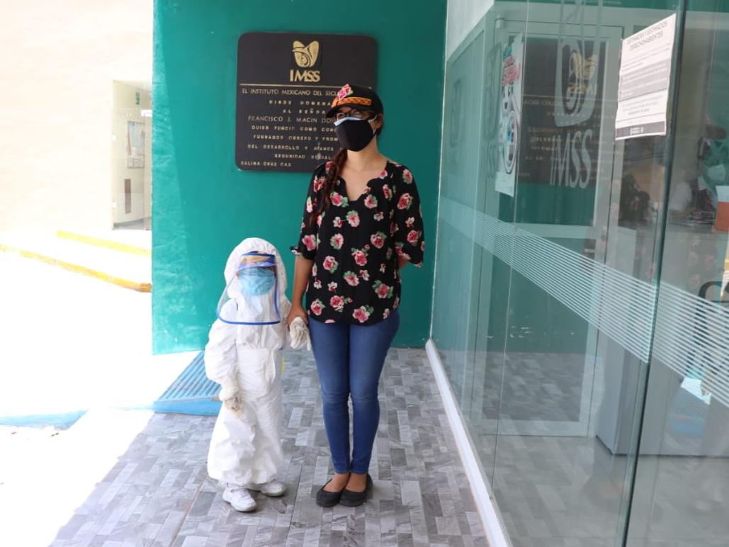 Por su parte, la Técnica de Orientación y Atención al Derechohabiente, Adda Rocío de la Cruz Balan, reconoció personalmente el esfuerzo de la madre de Víctor y refirió que cuando el niño entró al hospital causó sensación al verlo llegar con todo su Equipo de Protección Personal, “nos dio mucha ternura verlo así con un disfraz de astronauta”.