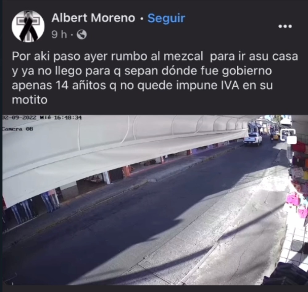 El padre de Luis compartió en su perfil social de Facebook un video en el que se muestra por última vez con vida a su hijo, quien viajaba a bordo de su motocicleta rumbo a la unidad habitacional de El Mezcalito, zona por la que cruzaba a diario para llegar hasta su hogar.