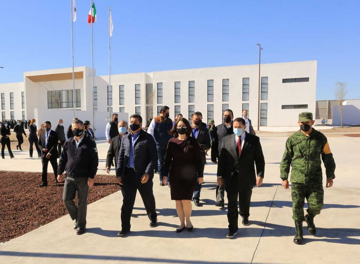 El nuevo complejo de Seguridad consta de un área de dormitorios para 640 elementos, gasolinera para abastecer combustible, campo de infantería, canchas deportivas, plaza cívica y áreas administrativas.